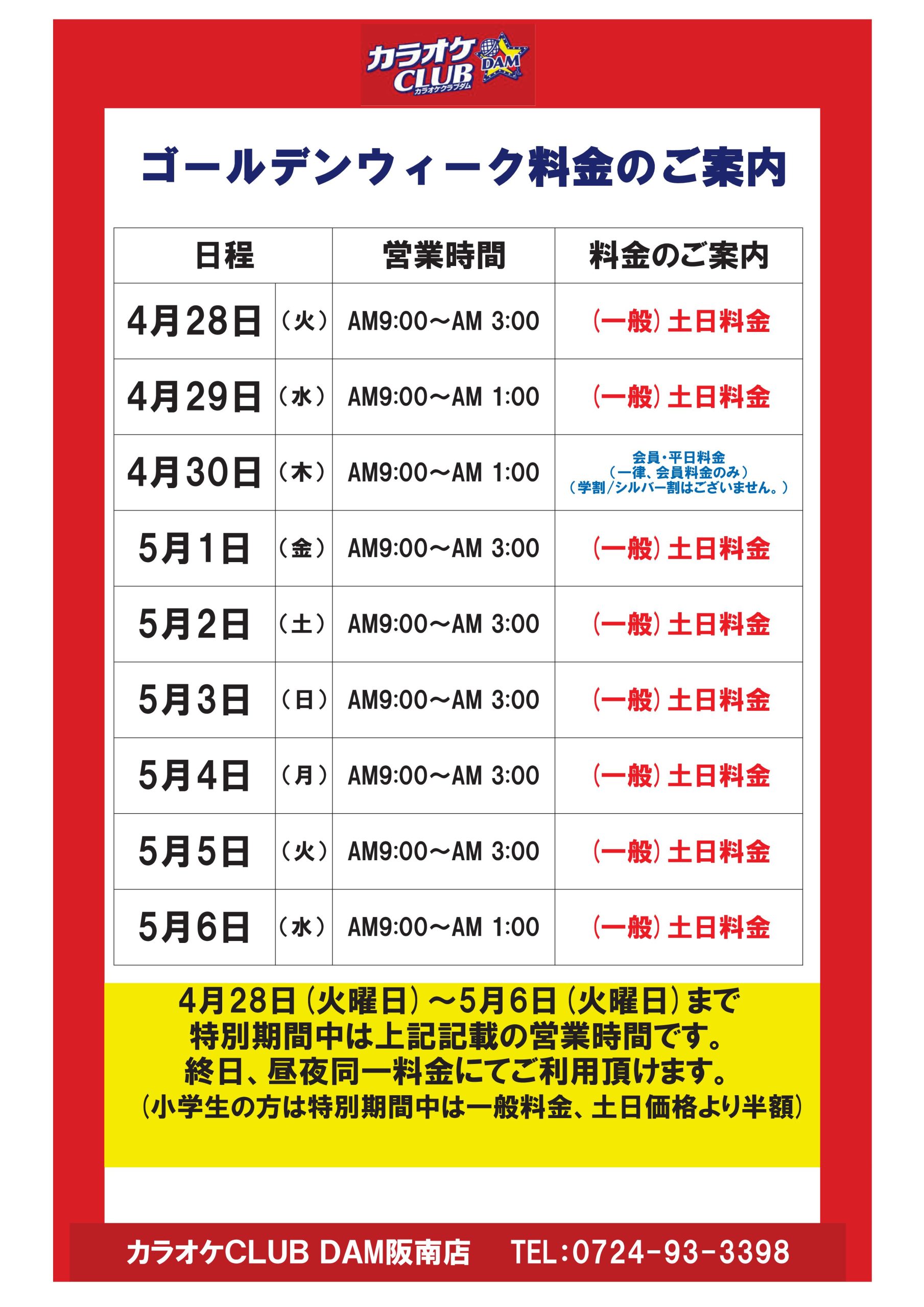 ※ゴールデンウィーク・お盆・年末年始などの特別期間は料金が異なる場合がございます。
