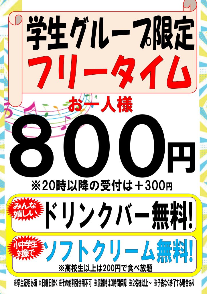 ※混雑時には、ご利用時間を制限させていただく場合がございます。(フリータイムを含む)