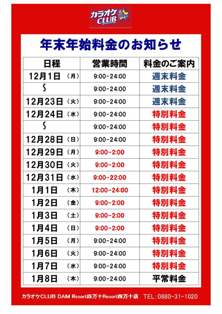※年末年始等の特定期間は料金が異なる場合がございます。店舗までお問い合わせ下さい。