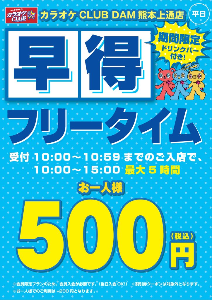 ※混雑時には、ご利用時間を制限させていただく場合がございます。(フリータイムを含む)
